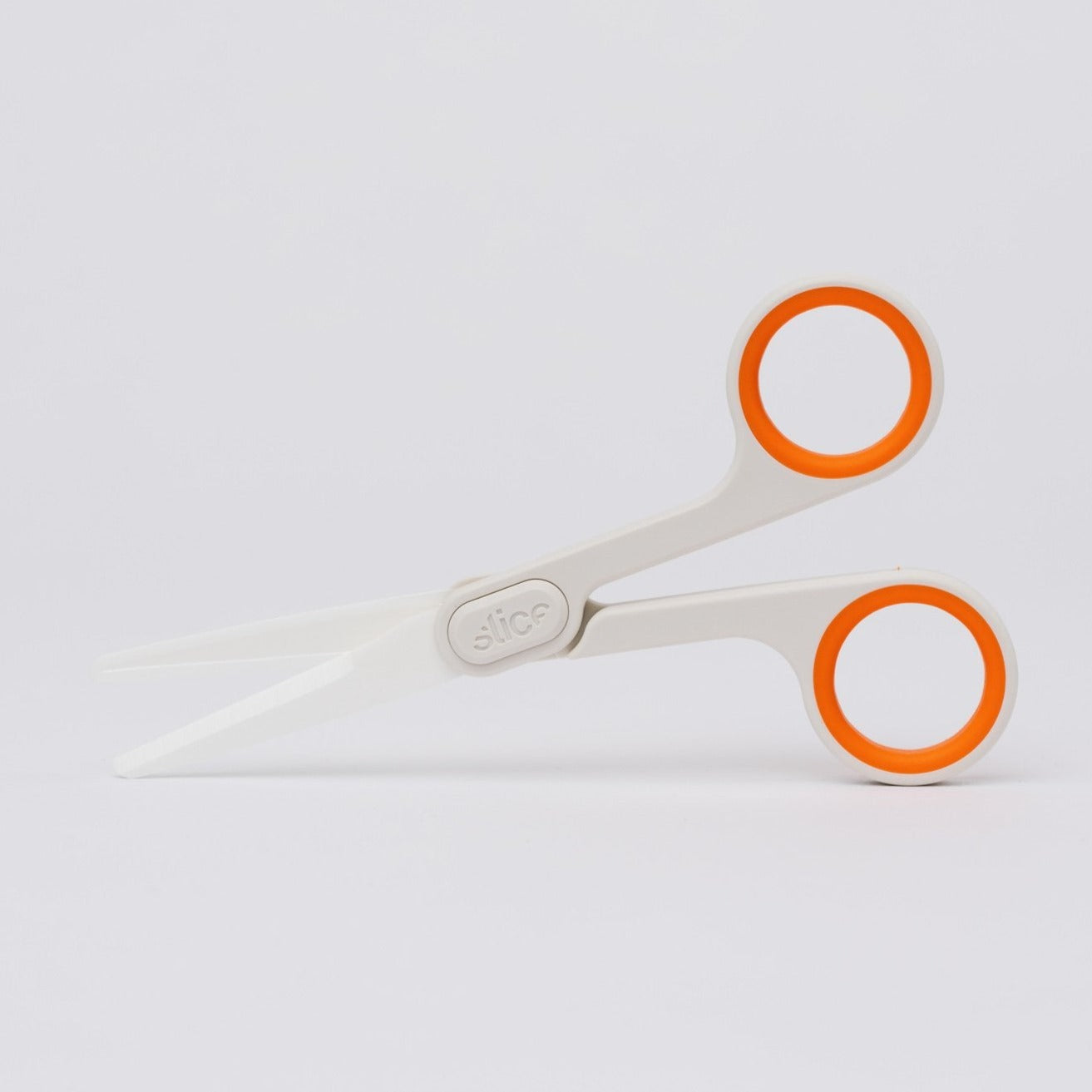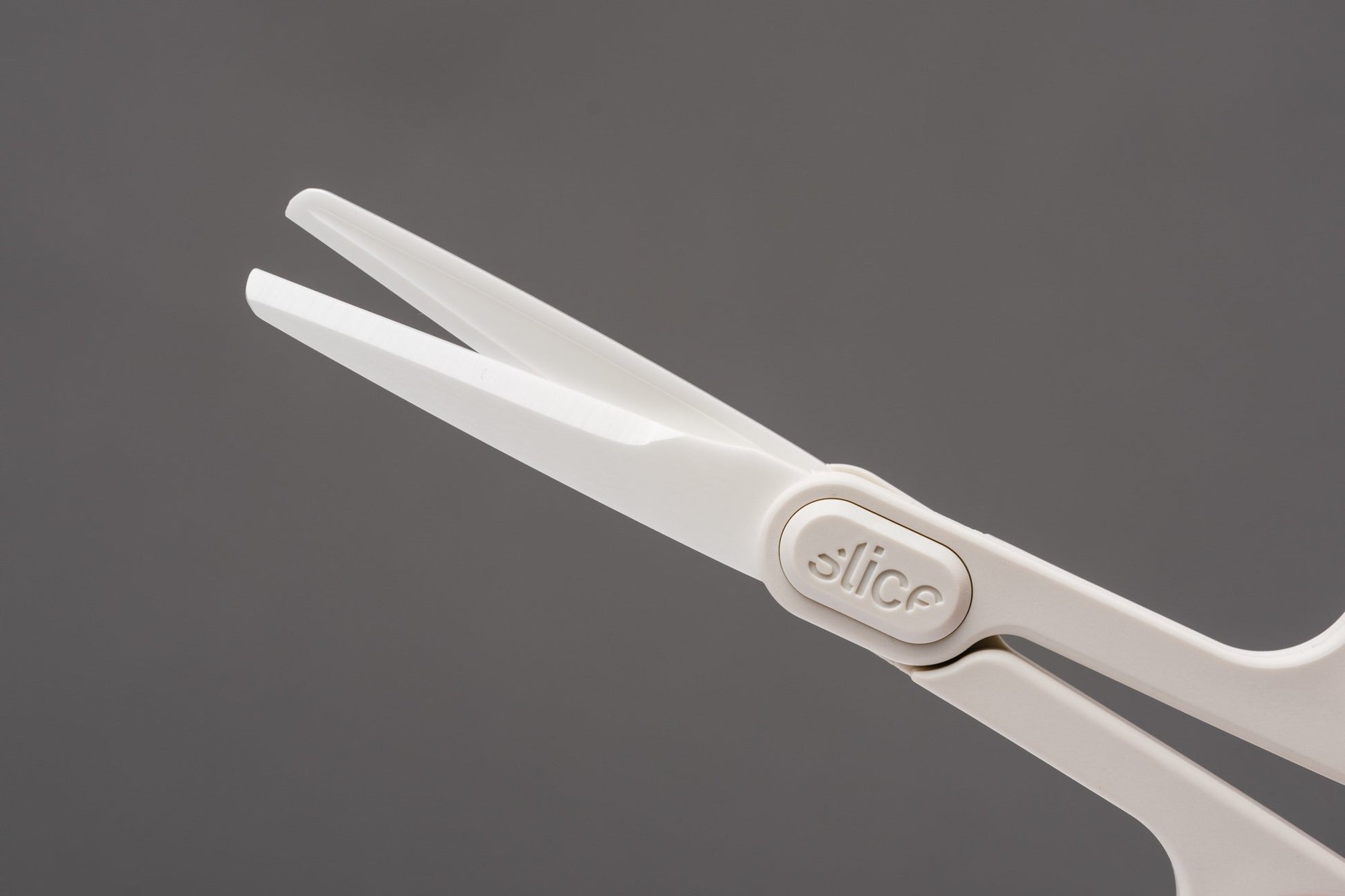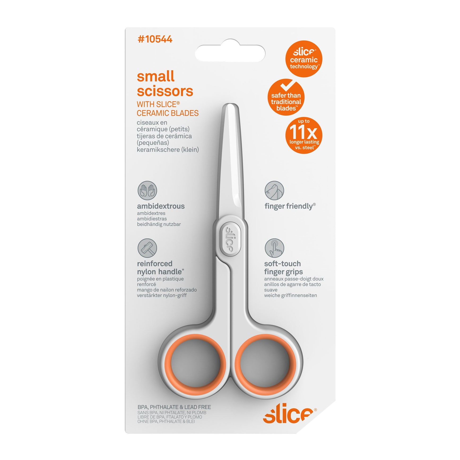 The Slice® Small Scissors are safe and comfortable, making them ideal for the home, office or laboratory, and are a great option for kids. They have finger-friendly® blades, which are safe to the touch, with rounded tips for additional protection. These highly portable scissors have soft-touch finger grips for comfort, a reinforced handle for durability, and are suitable for left- and right-handed users. Furthermore, you can confidently use them with food because they are BPA-, phthalate-, and lead-free. Slice remains the first choice for safety and effectiveness in industrial settings and is now recognized as the leading safety scissors in homes and offices. From arts and crafts tables to the kitchen and laboratory work surfaces, the Small Scissors make people and places safer.